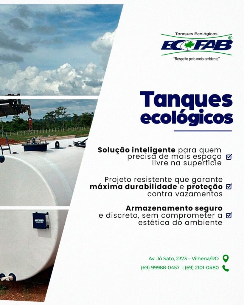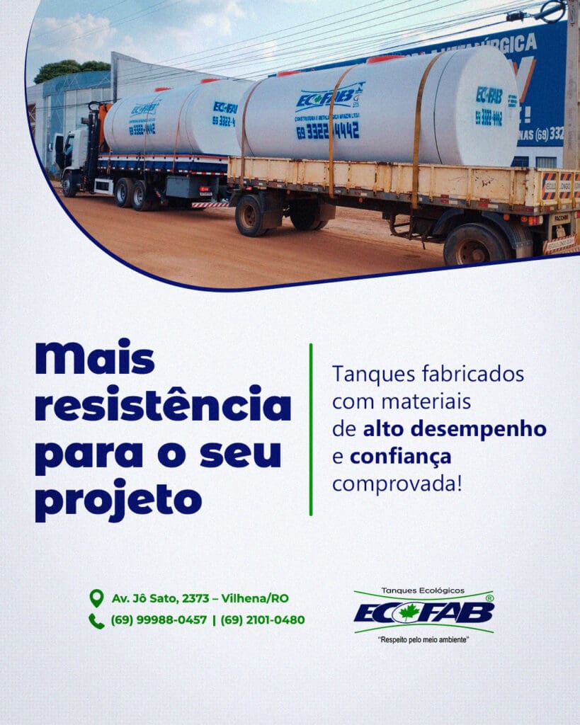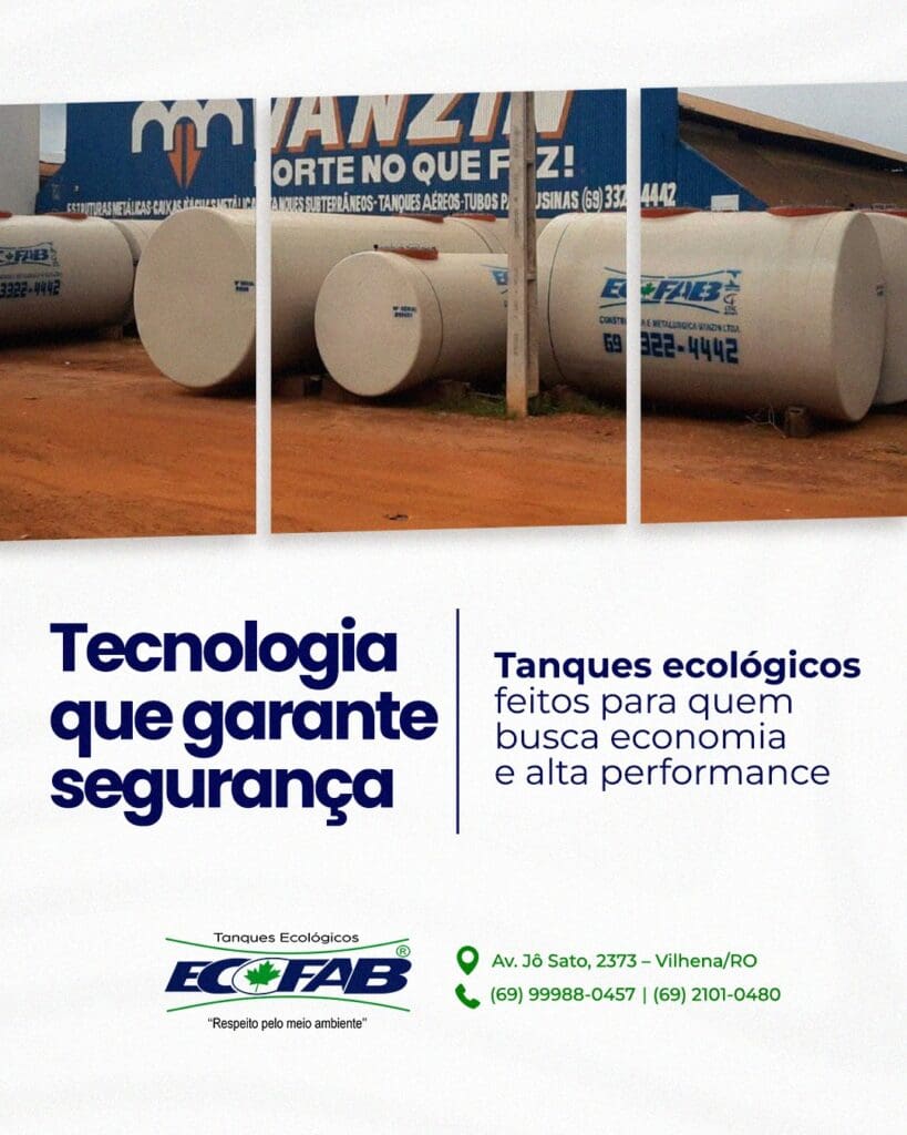 Cada estrutura é pensada para entregar desempenho superior, mesmo nas condições mais exigentes! 📍 Av. Jô Sato, 2373 – Vilhena/RO📞 (69) 99988-0457 | (69) 2101-0480..#Ecofab#TanquesEcológicos#AltaResistência#QualidadeComprovada#Sustentabilidade#VilhenaRO#Rondônia